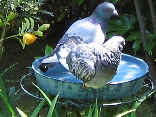 | 5月8日(月) 連休中に元気になった鳩を放したそうです。 ![]() 放す前のポーちゃんです。 美人です。 ![]() 庭に放しました。 ![]() まず、水浴びを始めました。 ひさびさのお風呂です。 ![]() 庭をお散歩中。 ![]() 奥の鳩は、前々からポーちゃんに求愛していた鳩です。 今は、ずーっと一緒にいます。 ポーちゃんが家の中でご飯を食べてる時も、外でずっと待ってます。 |