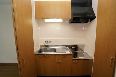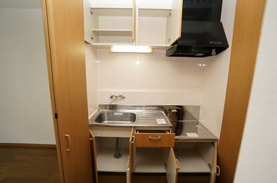 キッチンは目隠し扉あり、2口ガスコンロを設置できるのでお料理も楽々!洗濯機置場室内!